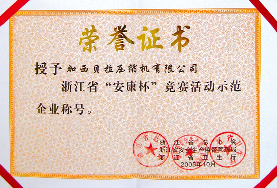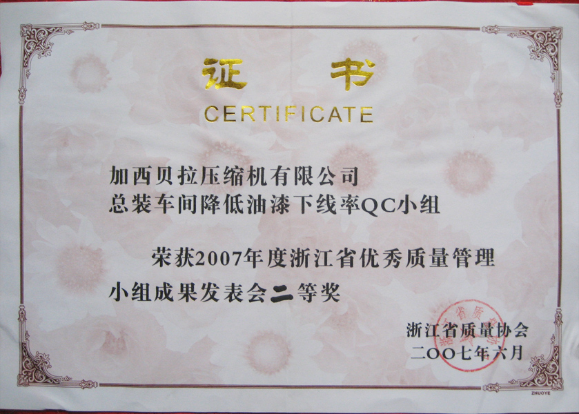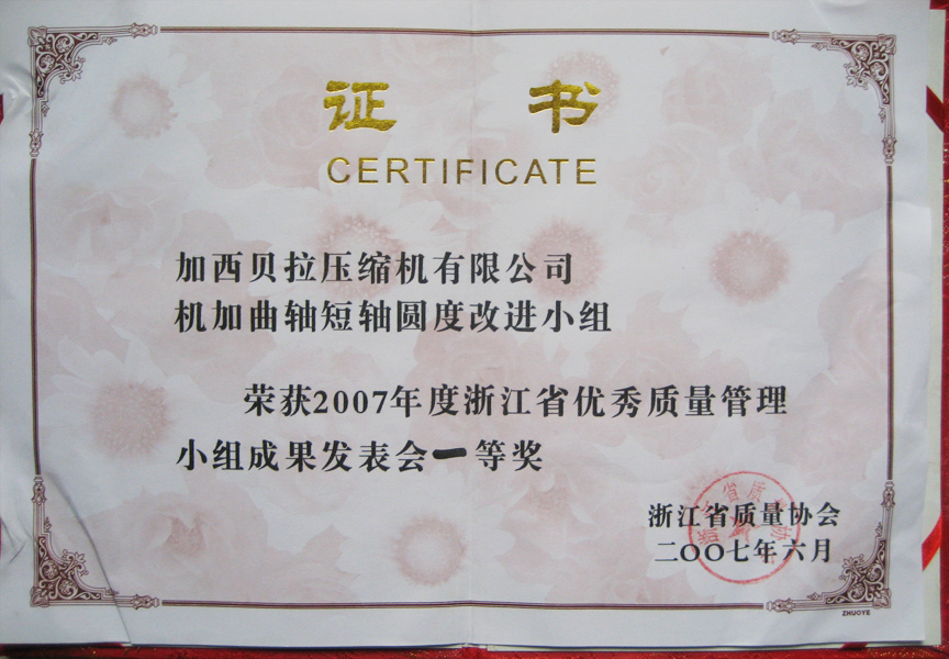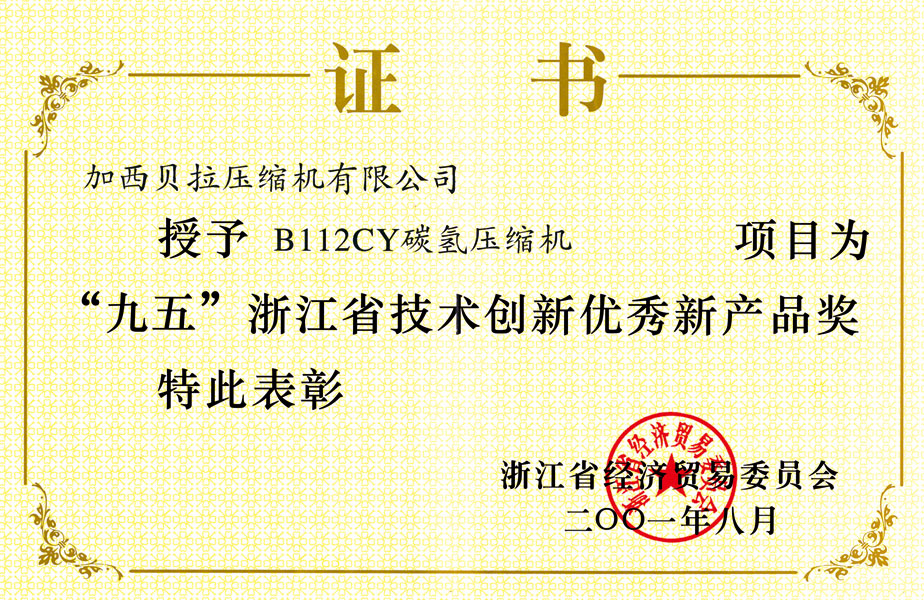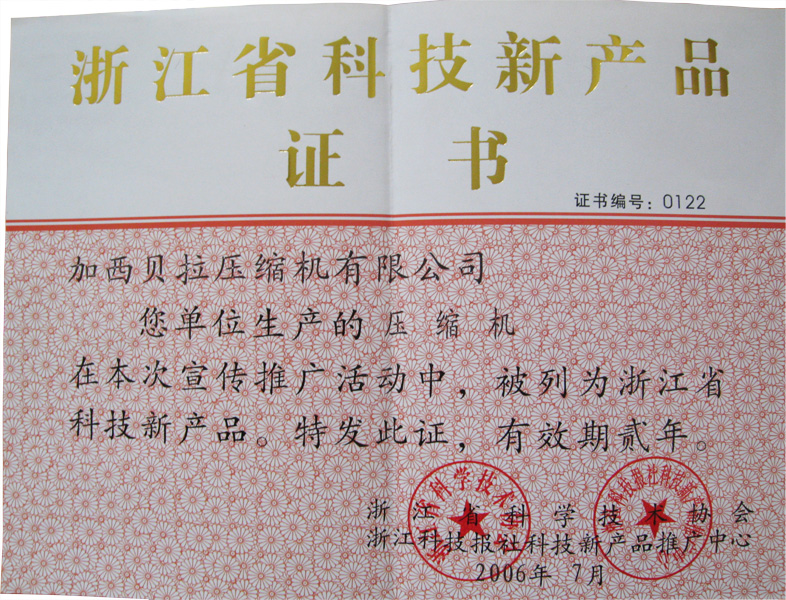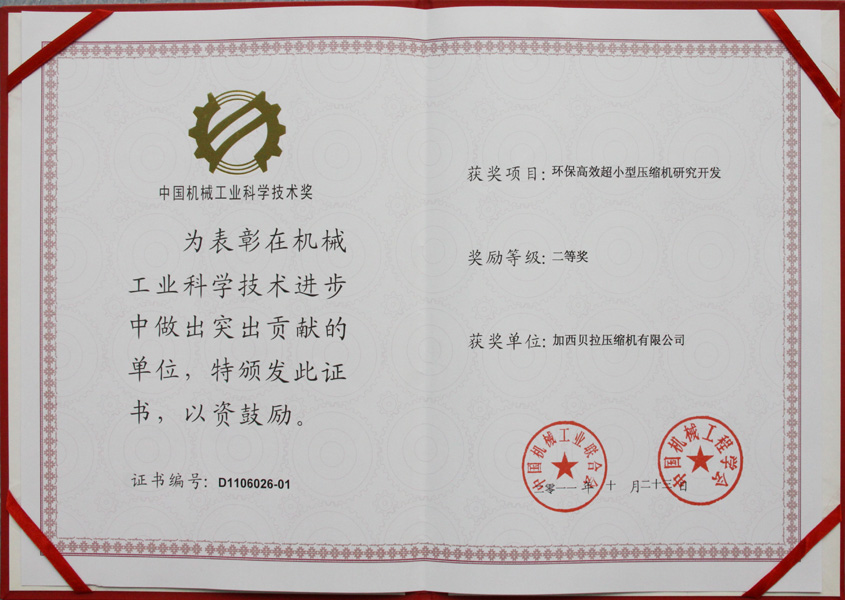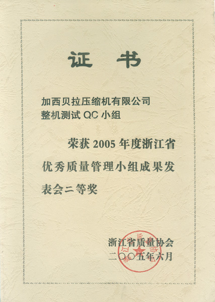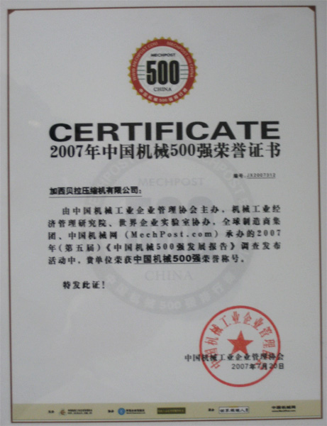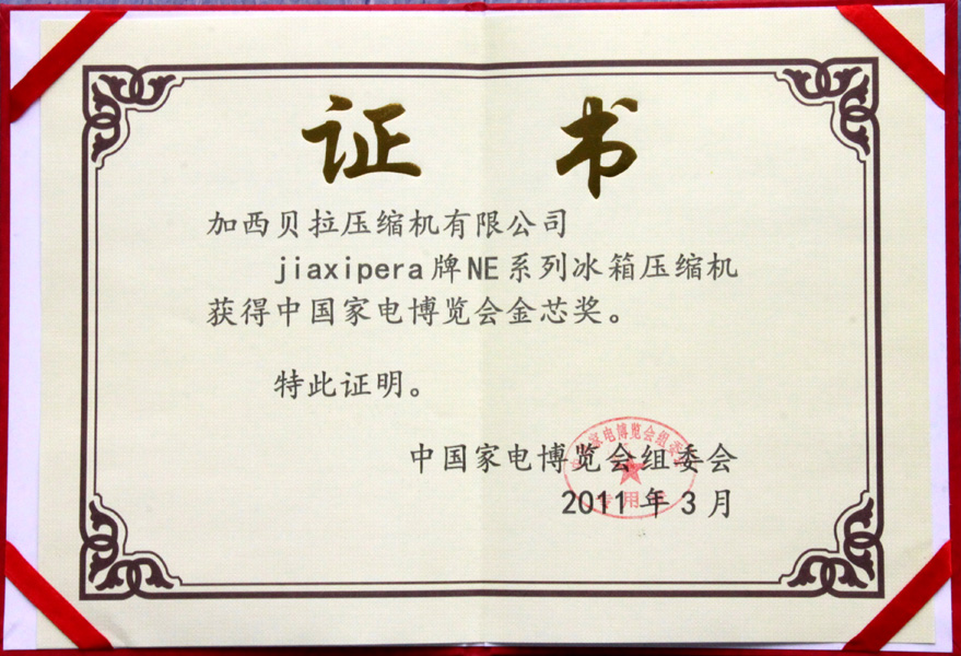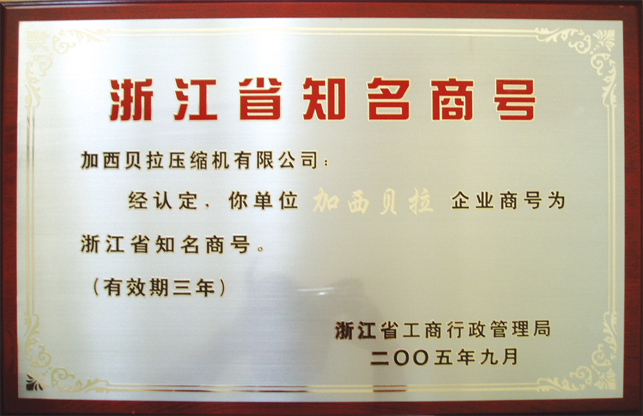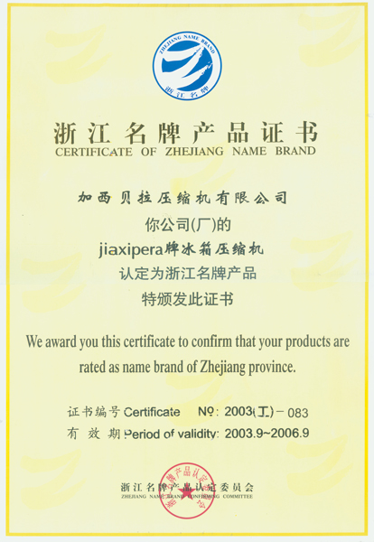 “jiaxipera ”牌壓縮機榮獲“中國名牌”稱號