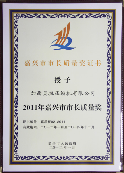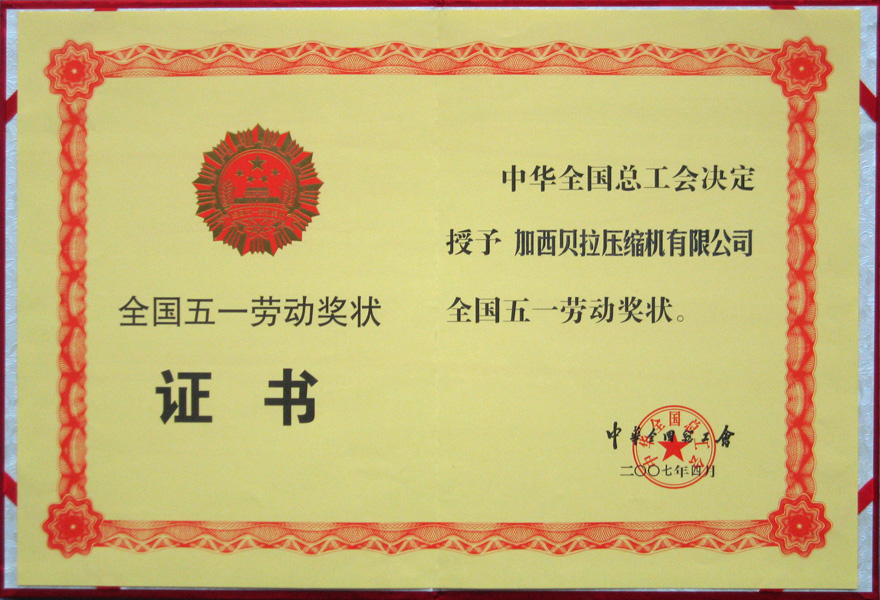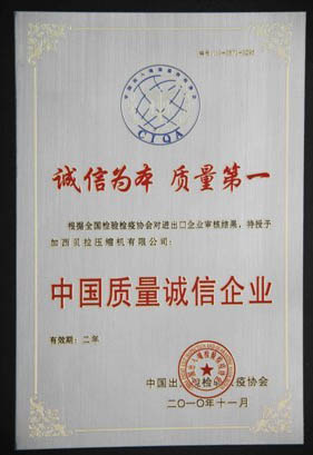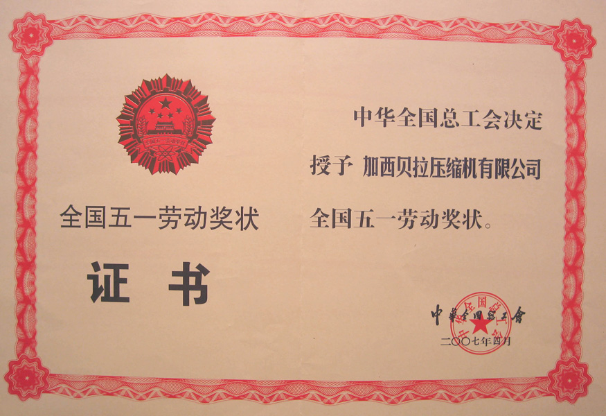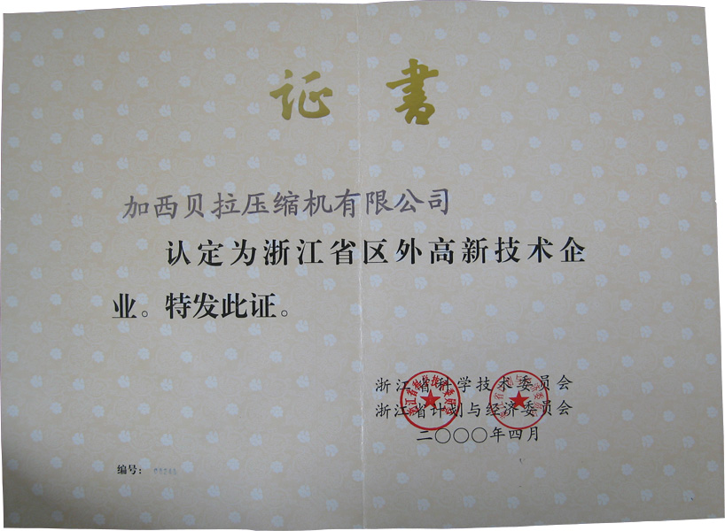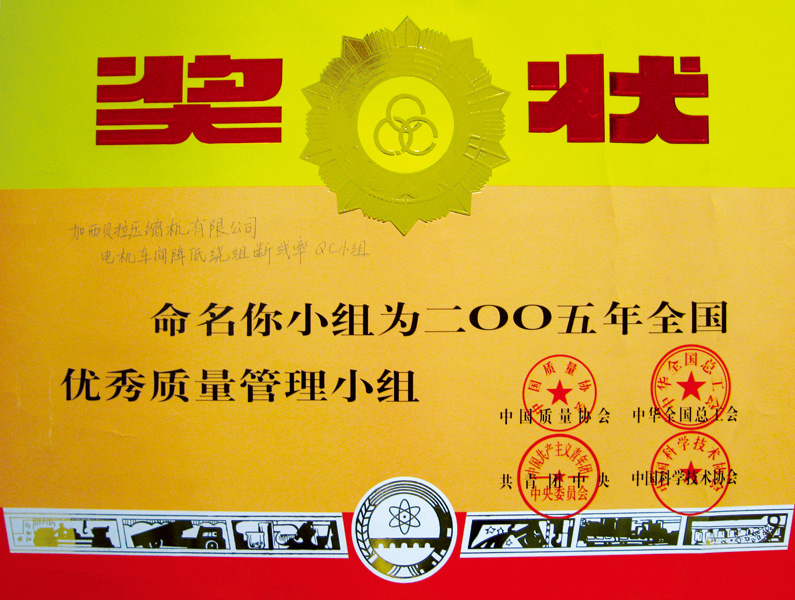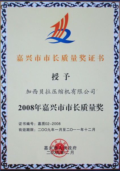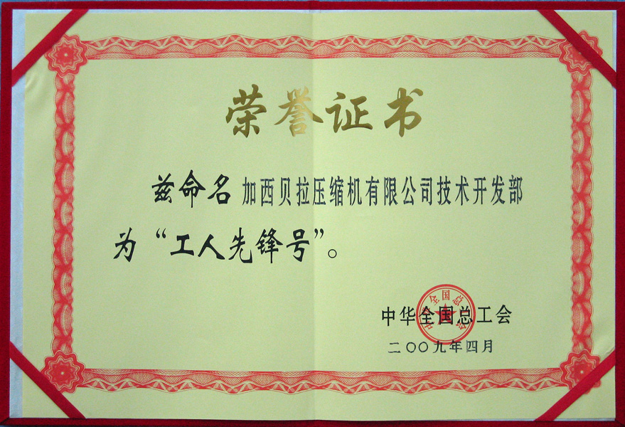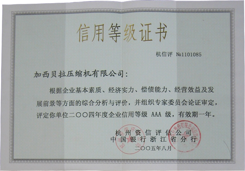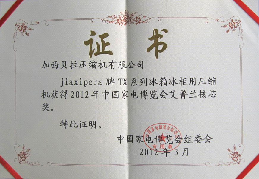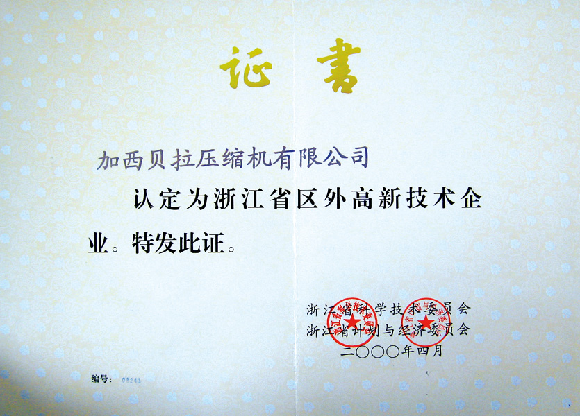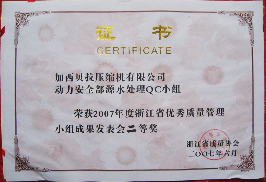 “jiaxipera ”牌壓縮機榮獲“中國名牌”稱號