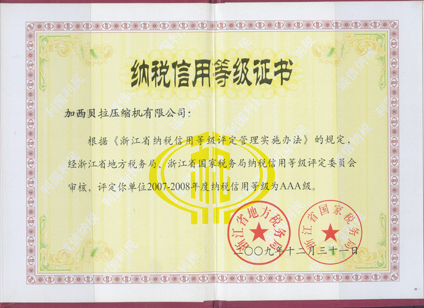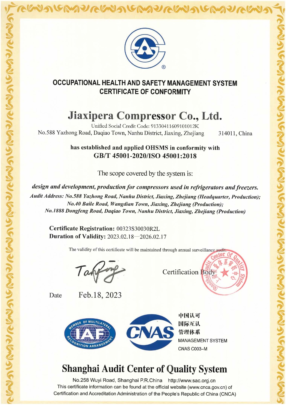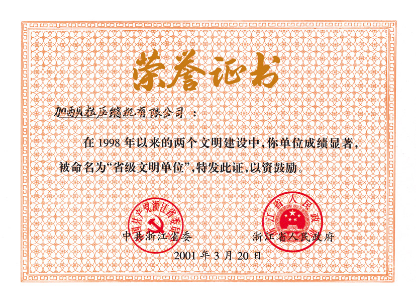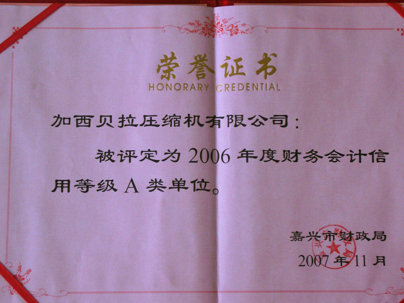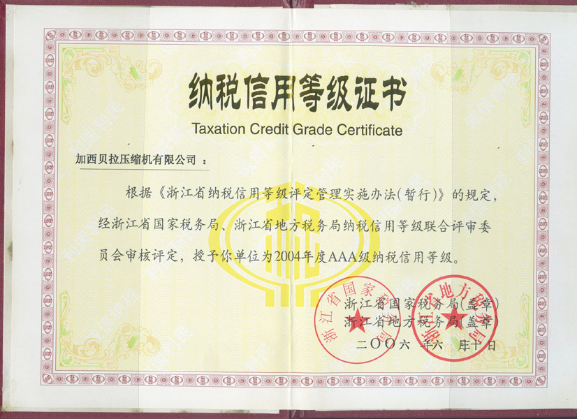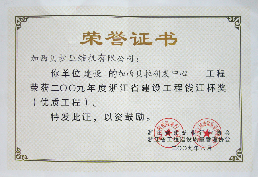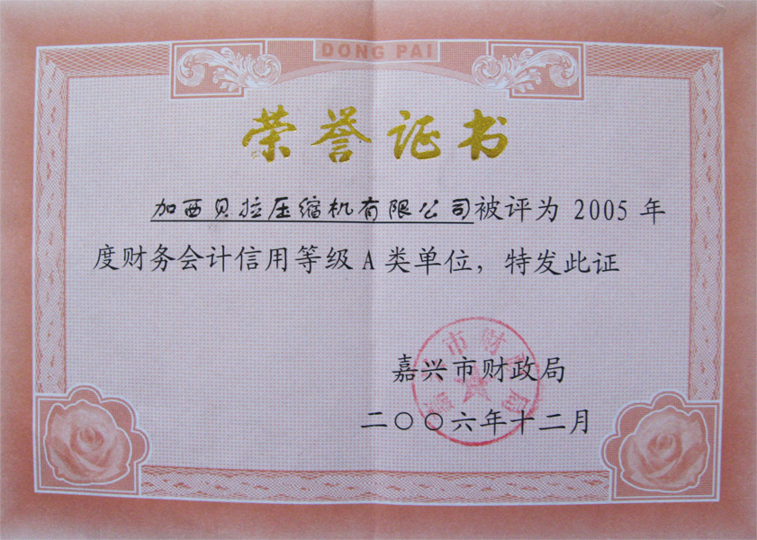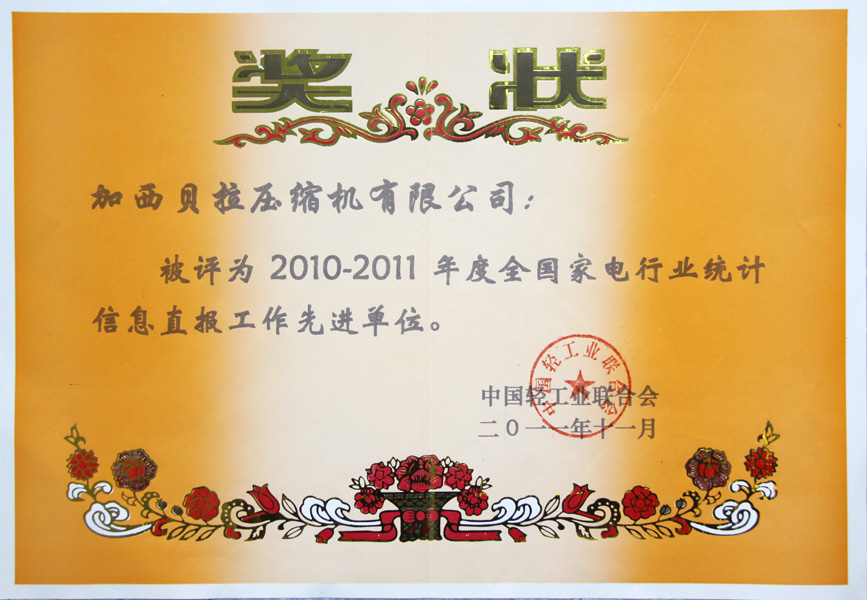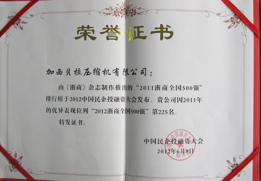 “jiaxipera ”牌壓縮機榮獲“中國名牌”稱號