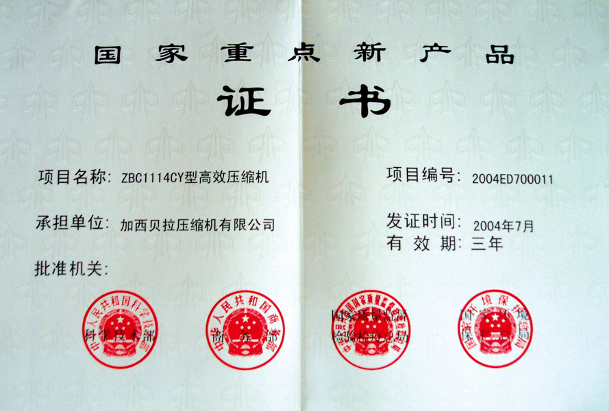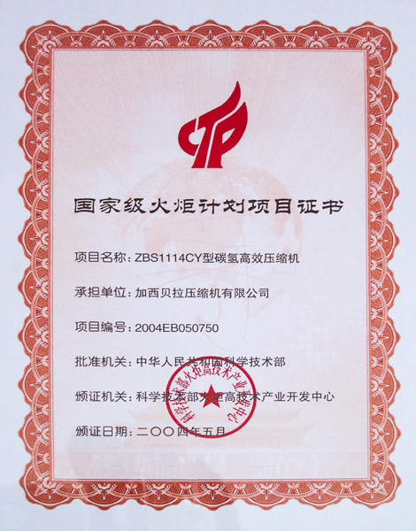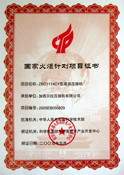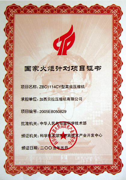 ZBS壓縮機被評為國家重點新產品、ZBC壓縮機被列入國家火炬計劃項目