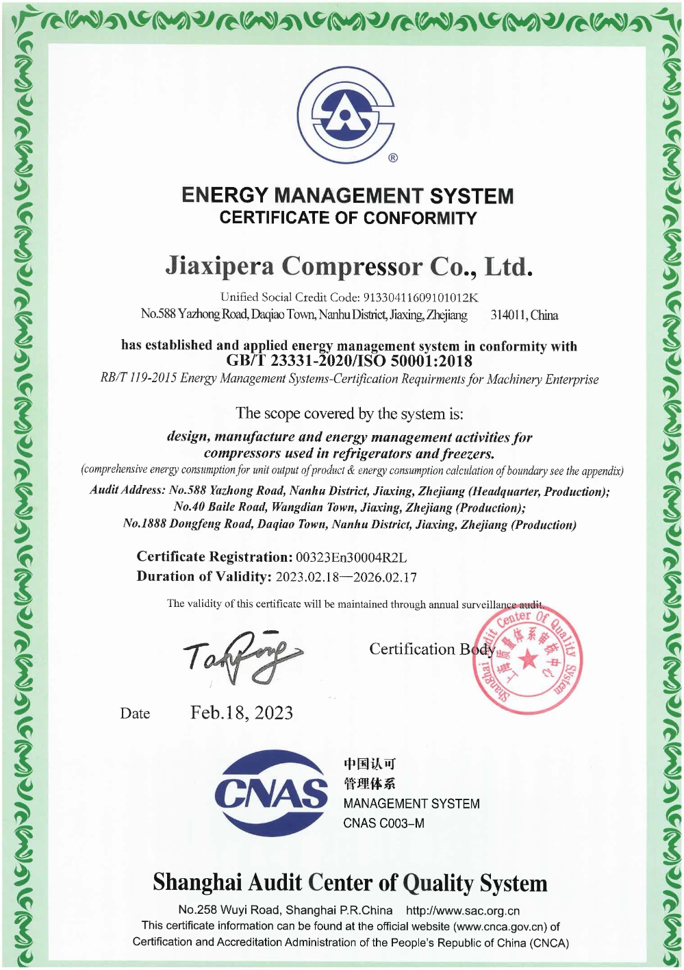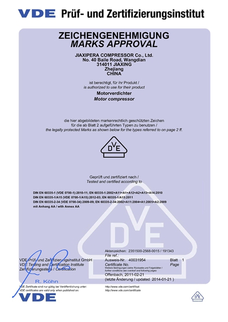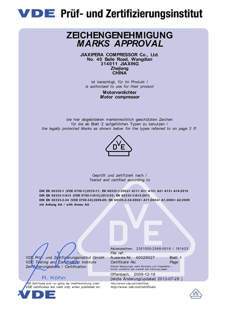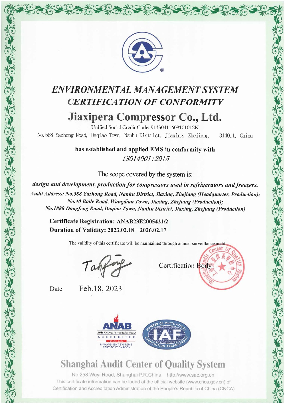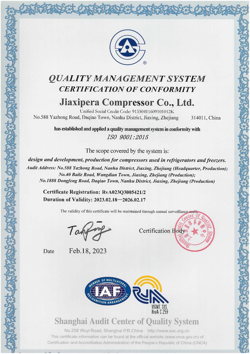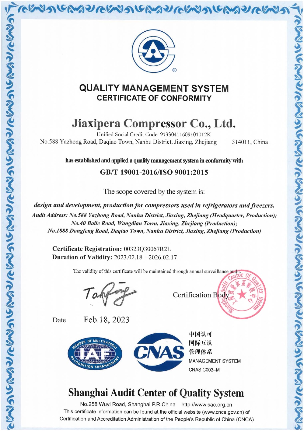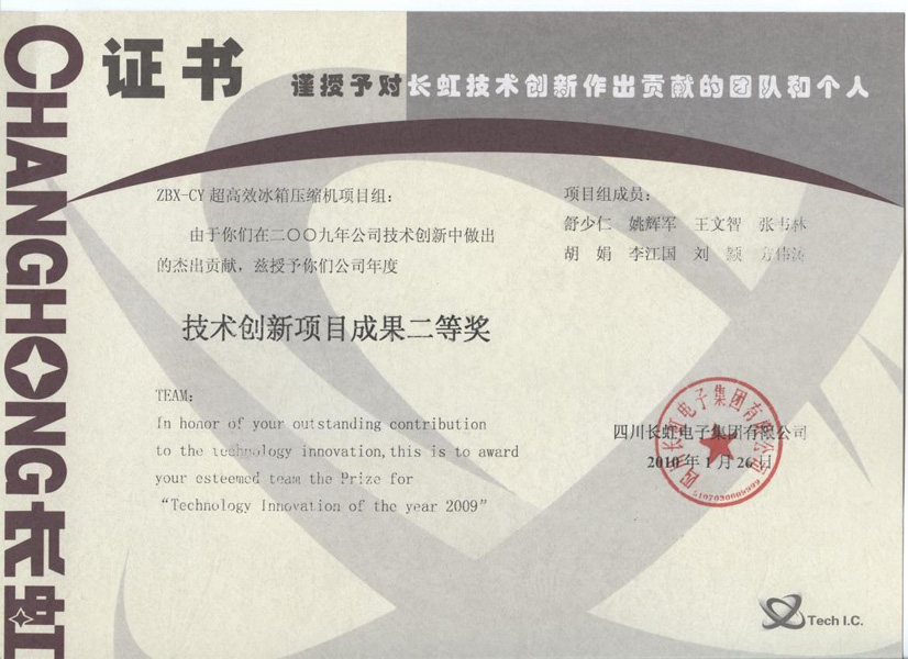 公司高效節(jié)能環(huán)保電冰箱壓縮機獲“浙江制造”認證